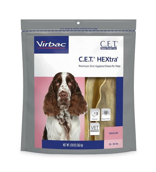 C.E.T. HEXtra Premium Oral Hygiene Chews for Dogs 26-50 Pounds, 30 Count